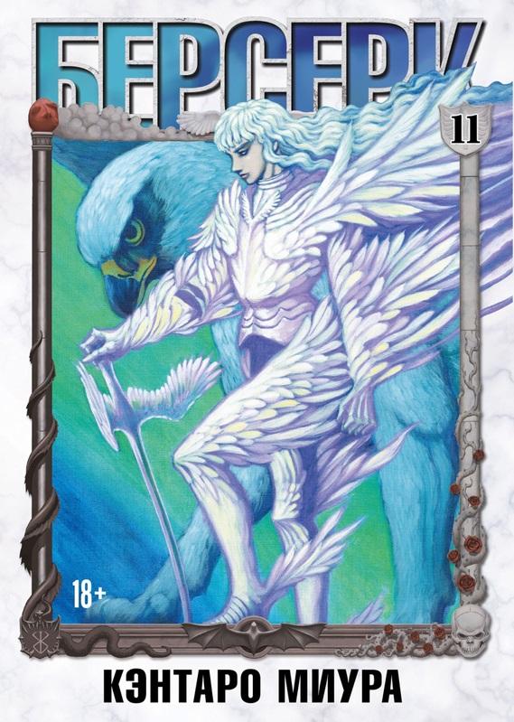 Первая половина одиннадцатого тома завершает арку о спасении Каски (её хотят сжечь как еретичку, виной тому клеймо на её груди). Чтобы вызволить подругу, Гатсу, объединившемуся с весьма разношерстной компанией, нужно выдержать осаду башни толпой фанатиков, сразиться с Мозгусом, который и до этого выглядел не очень, а сейчас и вовсе явил свой истинный лик, и, в целом, дожить до утра, отбивая атаки полчищ демонов. Зрелищно, всё время на грани, но для Гатса, в принципе, вполне традиционное занятие. Поэтому ставки в сюжете поднимаются с помощью несметных войск империи Кушан, начавших свой завоевательный поход. В мире «Берсерка» эти воины носят тюрбаны, ездят на боевых слонах, в их речи много индуистских терминов, имён и названий, им прислуживают ракшасы… в общем, это воинственные индусы. Или персы. Стоит в очередной раз констатировать, что гений Миуры-художника раскрывается в этом томе во всю ширь за счёт монументальных разворотов. Вот тут - армия кушан, очень детально изображены накатывающие друг за другом волны солдат, их обмундирование, оружие, боевые животные. Вот здесь - несметная тьма адских созданий, нарисованных так, что обитатели Дантевского Ада многим показались бы более предпочтительным и безопасным вариантом общения. Залипать на это можно долго. И над армиями, еретиками, демонами и командой Гатса возникает гигантская чёрная длань как символ того, что землю вот-вот накроет… что-то тёмное? Или, напротив, светлое? Летящее на крылатом монстре и продолжающее верить исключительно в осуществление своей Мечты?