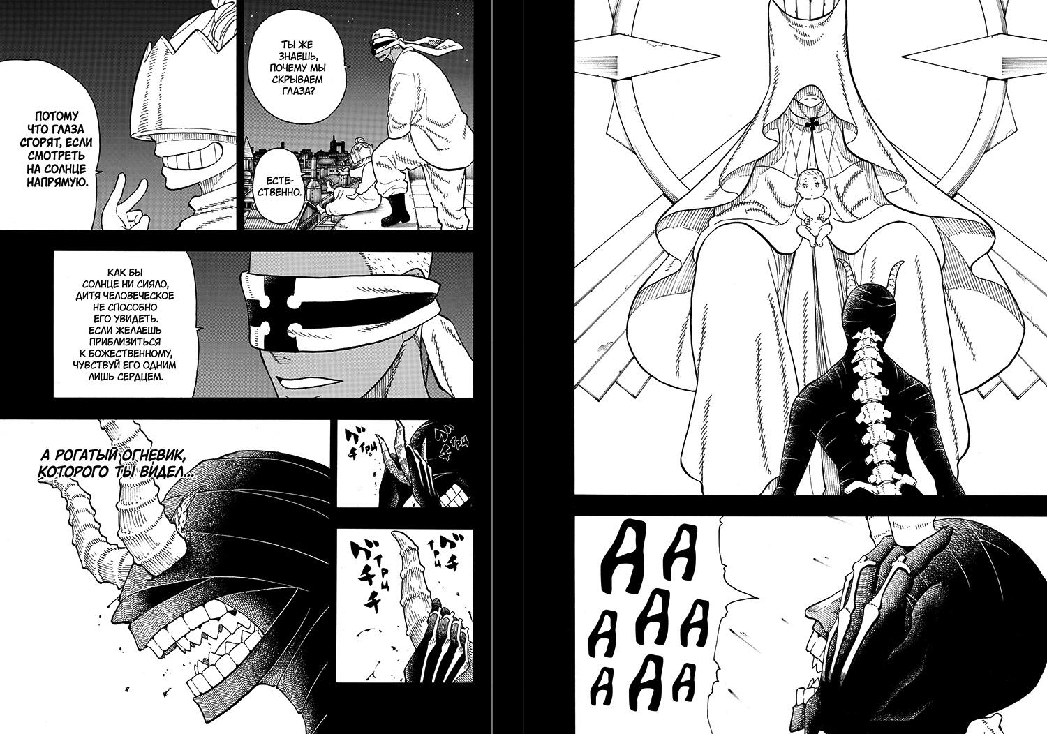 Давненько мы не заглядывали в Токийскую Империю Ацуси Окубо, и, надо заметить, зря – там творятся удивительные события, отраженные в шестом и седьмом томах манги «Бригада пылающего пламени». Если вкратце, то в основе этой вселенной находится огонь – из него этот мир был сотворён, его жар карает и созидает, он помещен в центр религиозных учений, вокруг которых сформировалась официальная Церковь и различные сектантские группы. И, скорее всего, им всё закончится. Формула эта кажется вполне традиционной для эсхатологических пророчеств, но в мире бравых пожарных всё движется к тому, что реализовано данное огненное предсказание будет совсем скоро, а не где-то там в отдалённой перспективе. Огонь вообще «штука» быстрая, не располагает к промедлению и раздумьям.