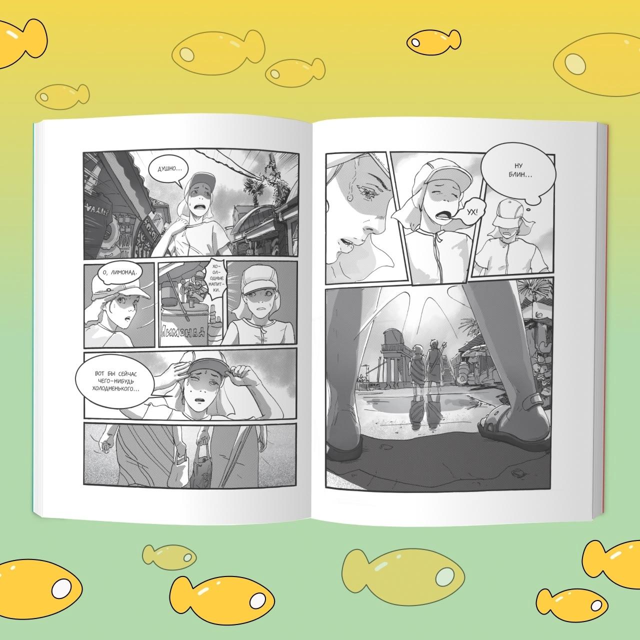 Надо сказать, что Настя и Эля – реальные люди, они хоть и выросли (собственно, кое-кто из них придумал и нарисовал этот комикс), но остались подругами по сей день. И эта книжка – рассказ об их знакомстве. Но не только. Это ещё и короткая история, насквозь пропитанная вайбом… нет, каким, на фиг, вайбом… атмосферой радостного, беззаботного детства и связанных с ним маленьких чудес, способных изменить всё вокруг. Оттого и рисунок тут очень милый, с большущим влиянием манги (к счастью, безо всяких нелепых искажений), и, в то же время, похожий на иллюстрации к советским детским книжкам. Листаешь, и прямо чувствуешь вот это всё: холодный лимонад, горячую кукурузу, теплую солёную воду, запах креозота и шершавость волшебной ракушки в руках. Жизнерадостное воспоминание о лете, детстве и дружбе, в осенних сумерках самое то, чтобы прогнать меланхолию. Не скажу, что комикс очень содержательный, но у него и суть другая – он тут в роли магнитика на холодильник или сувенира из далекого прошлого, который напоминает о самых лучших (несмотря на безнадёгу утренних побудок) днях в жизни.