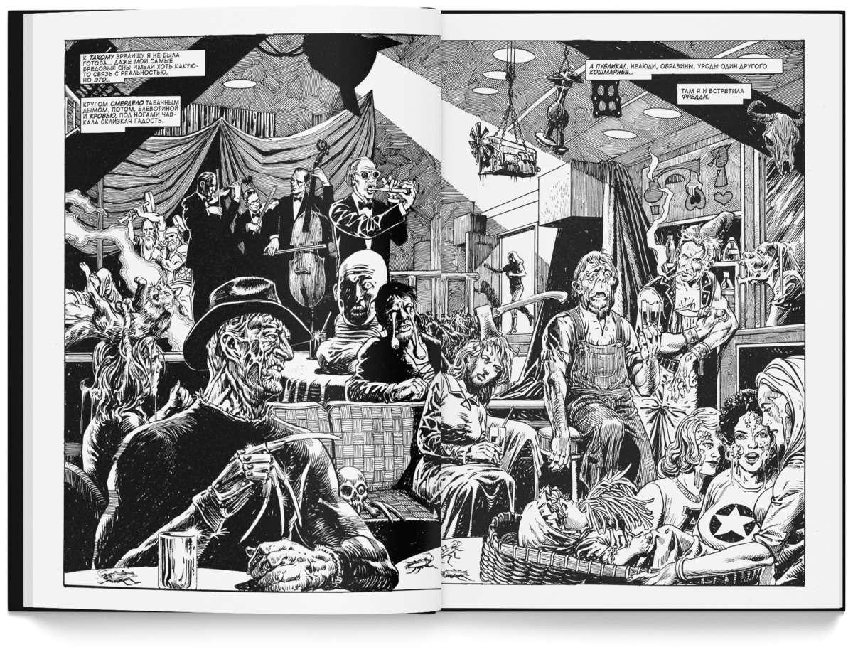 Все мы знаем, как закончил свою земную жизнь Фредди Крюгер, уйдя в вечность в почетном статусе «Главный по вашим ночным кошмарам». Но вот детство, юность и обстоятельства, толкнувшие его к тому, чтобы надеть красно-черный свитер в полоску и начать резать подростков города Спрингвуд направо-налево, в киновселенной Крюгера остались практически без внимания. До этого момента. Теперь есть возможность ещё глубже погрузиться в биографию культового маньяка благодаря выходу на русском языке самого первого, чёрно-белого комикса про Фредди. Сразу скажу, эпизоды этой биографии вполне вписываются в каноничный образ персонажа и в его поступки, то есть, они стандартно-чернушны, иногда даже с перегибами, заставляющими по-стариковски резюмировать: «Дааа, такую жизнь - не дай бог никому». А сам комикс рассказывает о двух молодых женщинах, остро нуждающихся в поддержке друг друга, ведь вдвоём у них есть шанс не только побороть сон, но и взять его под контроль в самом главном своём стремлении: выжить.