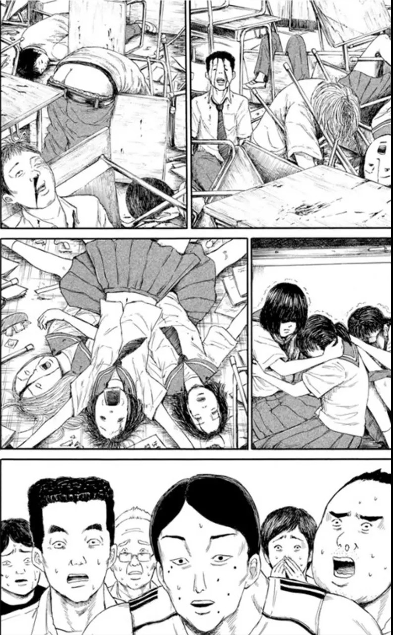 Им бы прямо в Токио начать поиски ответов на свои вопросы, но мангака начинает разрабатывать жилу «жизненной правды». Вы можете выглядеть как огромный кот, вы можете скакать блохой, но необходимость в жилье и в работе никто не отменял. Поэтому значительную часть времени персонажи ищут квартиру под съём и пытаются заработать немного денег, берясь за работу, которую обычно предлагают школьникам и людям без образования и опыта. Реалистично, что и говорить. И пока Нономия, Кия и Каппа выживают в городе, потихоньку подбираясь поближе к людям, которые могут ответить на интересующие их вопросы, по ночным задворкам ходит странная пара. То ли сестра с младшим братом, то ли мать с сыном. И один из них, скорее всего, и есть тот самый легендарный человек, который не просто объединился с чем-то благодаря Кривизне - он объединился с самой Кривизной. Соответственно, способен трансформировать реальность и объекты вокруг себя, чем активно и пользуется в психоделических сценах, напоминающих о бади-хорроре в стиле Дзюндзи Ито. Эта парочка также связана с другой легендой мазариан, которая в финале второго тома оказывается в центре толпы людей, отмечающих в Токио Хэллоуин. И последние страницы этой части манги уже больше напоминают о «Человеке-бензопиле». Заговаривающийся и потерянный дед изображает руками, как он в кого-то целится и стреляет из ружья. Ещё и ещё, выискивая мишени вокруг себя. Выглядит это жалко, но почему-то у людей действительно появляются раны и вылетают глаза. И всё это в праздничном шуме, способном заглушить любые выстрелы. Особенно те, которых вроде как и нет…