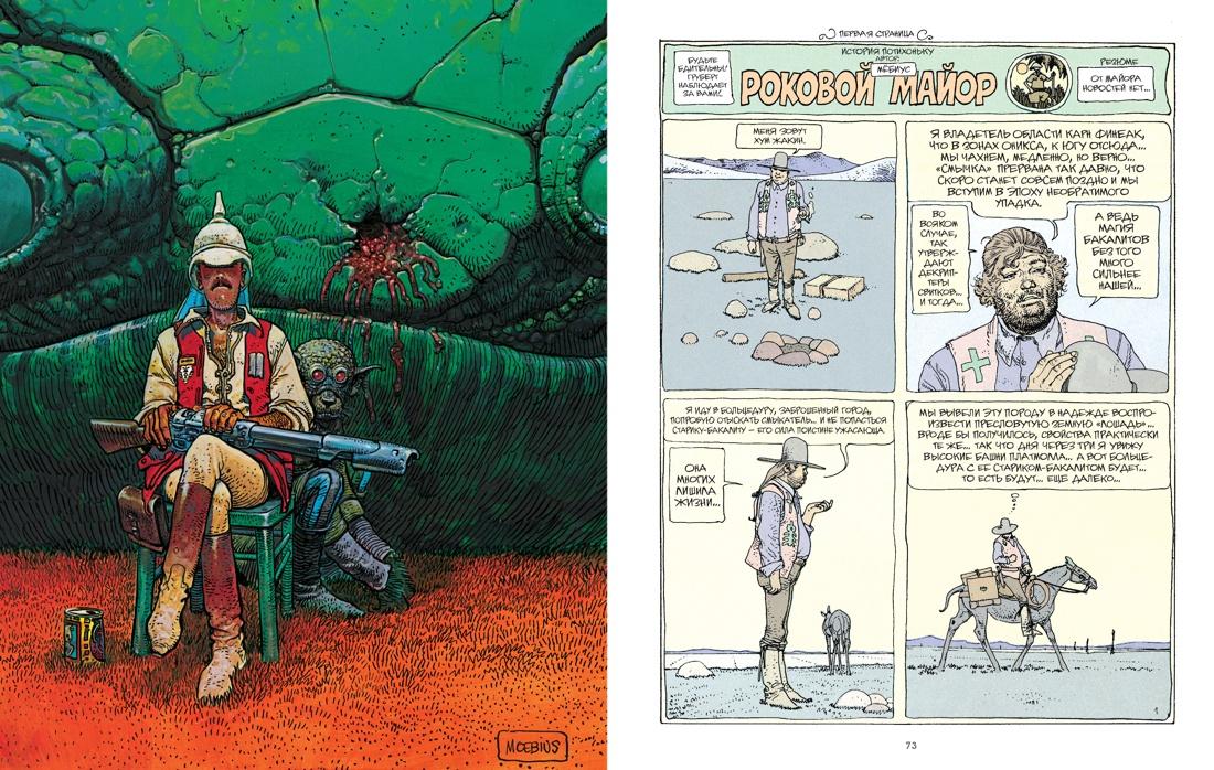 У каждого автора есть свой любимый, придуманный им же, персонаж. У Жана Жиро, а.к.а. Мёбиус, в любимчиках числился майор Груберт. Или Грубер, Жиро весьма вольно распоряжался количеством букв в именах своих героев, если вы читали первый том собрания работ этого французского гения «девятого искусства», то обратили внимание на варианты имени «Арзак». На вид Груберт - типичный французский персонаж, путешественник в пробковом шлеме и в костюме колониста, его легко представить где-нибудь в Африке, отстреливающим слонов. Впрочем, в момент первого появления на страницах журнала «Pilote» майор шлемом ещё не обзавёлся, его голову скрывала от солнца оббитая леопардом шляпа. Сам майор курил трубку и вместе с верным спутником Умберто Мантеки охотился на француза-отпускника, больше всего мечтая вернуться к своей невесте Мальвине. И самое странное во всём перечисленном - как раз француз-отпускник, молчаливый и явно карикатурный турист в шортах и сандалиях поверх носков, который куда-то бежит и которого нужно зачем-то поймать. И вся эта беготня перерастает в гротескный сюжет, разделённый на одностраничные стрипы.