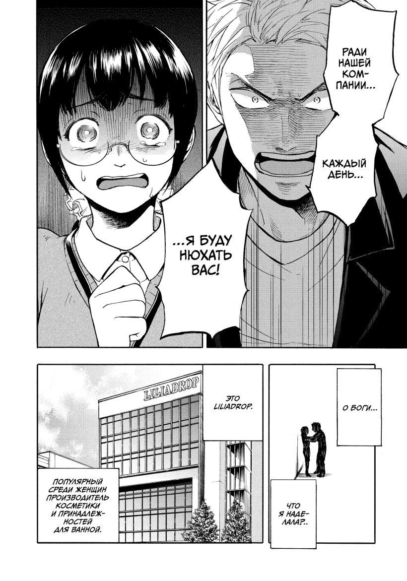 Я уже не раз говорил, что нет такой темы, о которой японцы не нарисовали бы мангу. Даже если эта тема вызывает неловкость. С точки зрения мангак и издателей, это даже правильно, так читатель лучше прочувствует то, что переживают главные герои. И вот вам манга про пот. И потных женщин. И мужчин, которым это нравится до умопомрачения. Асако работает в крупной компании, производящей косметику и средства для ухода, наличие скидки для сотрудников на продукцию немного облегчает жизнь девушки. Асако симпатична, мила, но неуверенна в себе, застенчива и всегда на стрессе. Но однажды случается странное: её буквально зажимает в углу Котаро Натоки и заявляет, что будет нюхать её каждый день. Этот молодой человек работает в отделе разработок, создаёт гениальные парфюмы, рвущие топы продаж на рынке, так что у него есть в компании существенные привилегии. К тому же он молод, красив и настойчив. И вот этот почти что идеальный мужчина попадает в зависимость от запаха тела Асако. Разумеется, сначала Котаро говорит, что всё это ради развития бизнеса, исходящий от девушки аромат вдохновляет его на создание новых шедевров. Натоки улавливает в запахе Яэсимы шлейф созданных им же ароматов, но больше всего его привлекают «чистые ноты», способные меняться в зависимости от настроения робкой бухгалтерши.