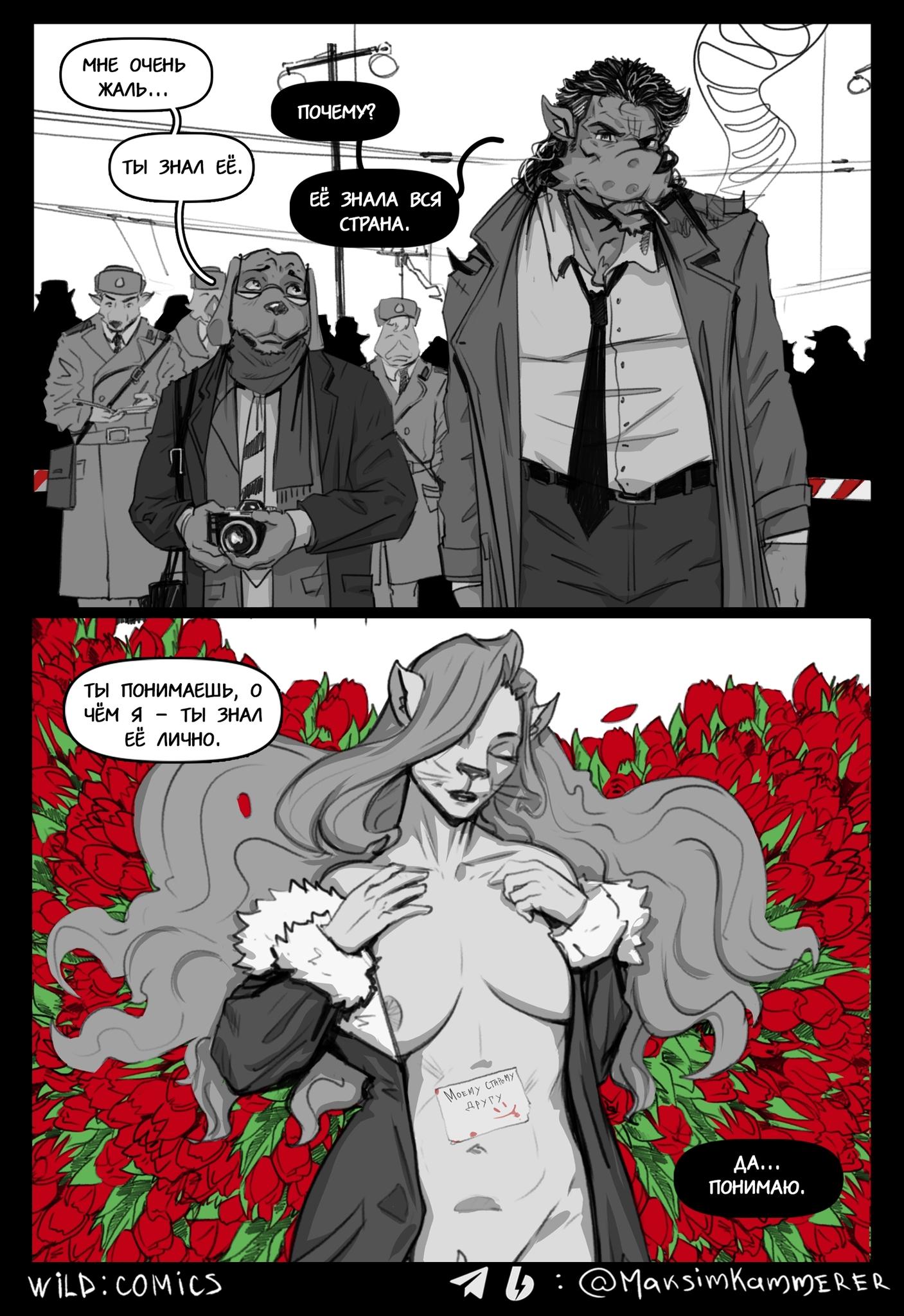 Вся предыстория подана в справочном тексте, открывающем комикс. Первые преступления в 1972-м, громкое убийство народной артистки Нелли Леницкой в 1974-м, ещё более громкий побег задержанного Волковым Зайца из участка, когда погибли восемь сотрудников милиции, а само ЧП получило название «Октябрьская бойня». Основной сюжет стартует в 1988-м, и этому периоду чёрно-белые оттенки подходят как никакие другие. Как и в реальном СССР, в Зверовске витает ветер перемен, недвусмысленно намекающий на то, что скоро всё кое-чем капитально накроется. Волков получает вызов, приезжает в квартиру, где кто-то расправился с женщиной (если что, с козой). Младший личный состав милиции представлен в образе туповатых свиней, но остальные коллеги Волкова и он сам выглядят и ведут себя как профи… утомленные, правда и не всегда сдерживающиеся. То есть, как обычные менты. Волков, например, размышляет – по правилам нуара, мы всегда следим за внутренним монологом главного героя – о том, как он втащил репортеру, задававшему вопросы о делах минувших.