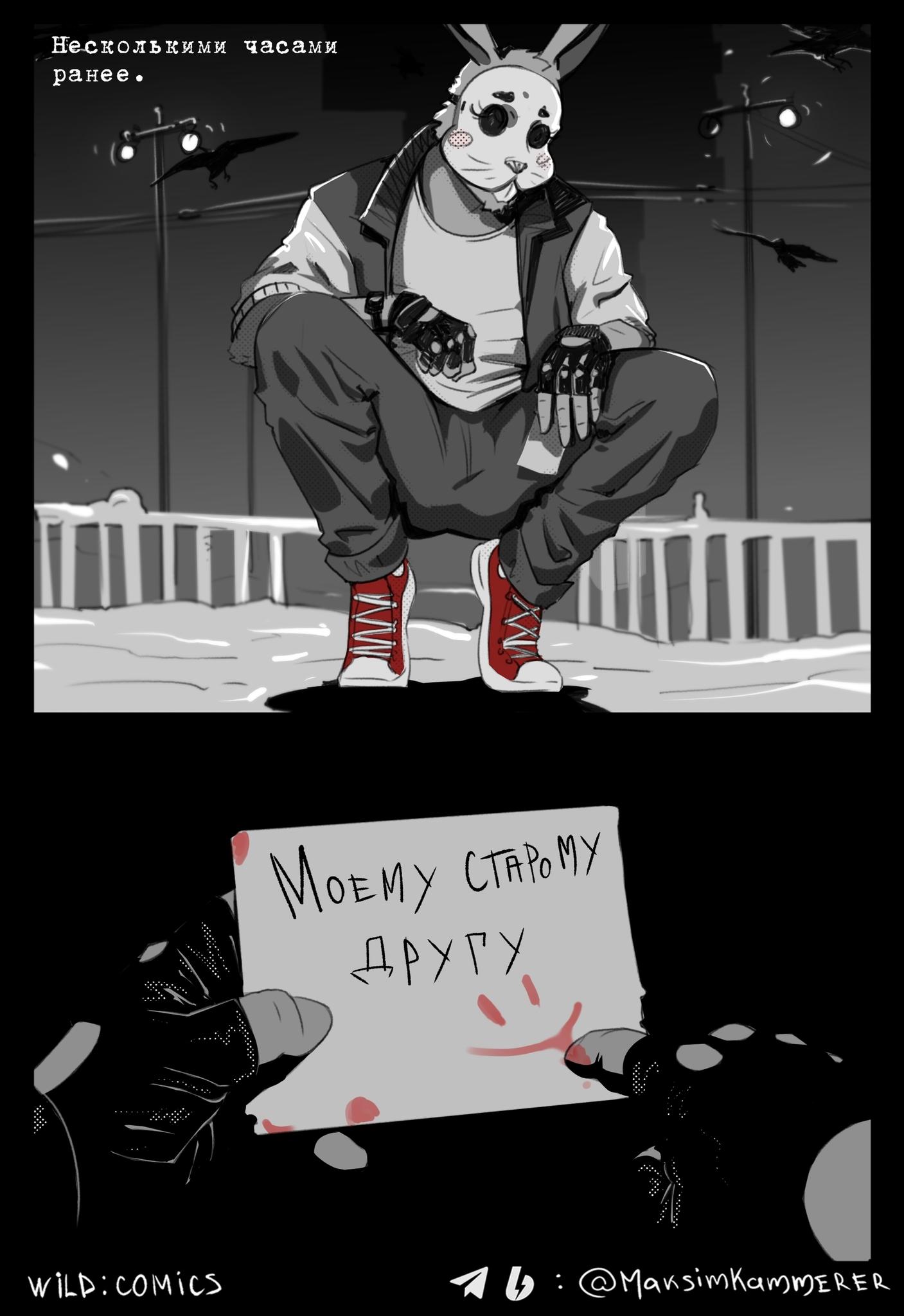 А вот на этом основная сюжетная линия заканчивается. Максим Каммерер и Кир ввели нас в курс дела, примерно набросали конфликт, представили персонажей и, не особо сдвинув сюжет в сторону развития, сосредоточившись на атмосфере, оставили читателей в режиме ожидания. И это, кстати, наименьшая часть первого тома. Остальное место занимают короткие и не очень истории, призванные расширить лор «Wild», и заодно поиграться с отсылками и оммажами. Немного странно, что, не доработав основной сюжет до чего-то конкретного, авторы уже берутся за дополнение созданного ими мира, который, по большей мере, пока что присутствует лишь в их головах. Может быть, стоило сосредоточиться на главном? Но давайте оставим ворчание, тем более что большинство из этих историй получились очень даже ничего себе. В паре из них нас знакомят с персонажами, которые должны фигурировать в основном сюжете (когда-нибудь). Криминального авторитета иронично зовут Козёл и нам показывают его путь становления в преступном мире, причём всё это вдохновлено комиксом «Criminal» Эда Брубейкера, поэтому тут всё чисто по-западному: фразы, мизансцены, поступки. В другой истории есть Анна, она тут кто-то вроде решалы. Рассказ строится на диалоге этой симпатичной, но смертельно опасной девушки с другой дамой, всё напряжение создается на контрасте расслабленных поз и напряженных фраз. А вот «В поисках маленького друга», или же «На хрена я в это влез...? – это снова о Волкове, и это одна из лучших историй сборника. Волков сидит дома в майке-алкоголичке, чиркает спичками, курит и гоняет мысли в голове, но ему всё же придется совершить ошибку и выйти из комнаты, ведь соседский мальчик просит его найти своего лучшего друга. Мягкую игрушку. Расспросы во дворе, обязательная часть работы опера, приводит капитана на склад, где совершается самое настоящее преступление. А как его предотвратить, если табельное оружие осталось дома, до ближайшего отделения три километра, а мобильных еще ни у кого нет? Остаётся уповать на ментовскую смекалку и везуху. Отличный эпизод, в котором гораздо больше от «Улицы разбитых фонарей». Есть здесь и новогодний special, в нём обыгрывается культовая сцена, в которой Волк из «Ну, погоди!» надел костюм Снегурочки и запел, один раз за весь сериал, голосом Анатолия Папанова. Автобус с детьми и другими пассажирами застрял на трассе в новогоднюю ночь. Хорошо, что детям тогда для праздника хватало мандаринов, вырезанных из бумаги снежинок и простого, человеческого тепла. Душевно, чего уж там. Присутствуют здесь и короткие стрипы, помещающие Волкова в разные вселенные. Заяц-Робот, один из страхов нашего детства, склоняется над испуганной девушкой? К счастью, только на оммажной обложке. Гораздо смешнее шутка, обыгрывающая главный милицейский мем «У нас труп, возможно, криминал!». Волков в виде самурая-одиночки тоже очень хорош, лучше, чем Волков в образе вампира.
